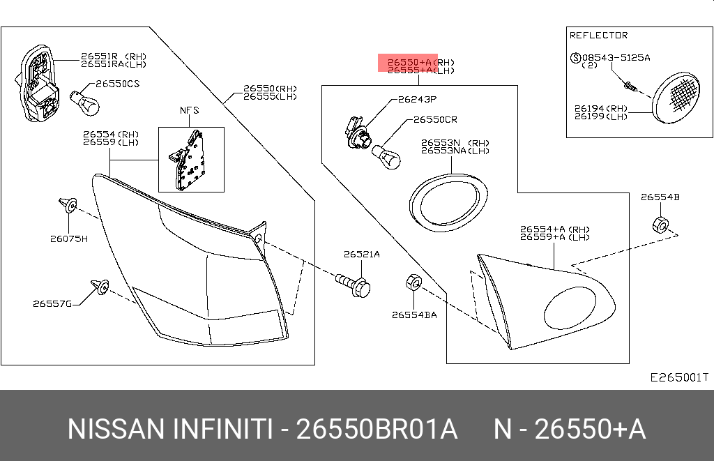 26550-BR01A NISSAN ФОНАРЬ ЗАД. ПРАВ. J10 10 01.10 => (В КРЫШКУ БАГ.)