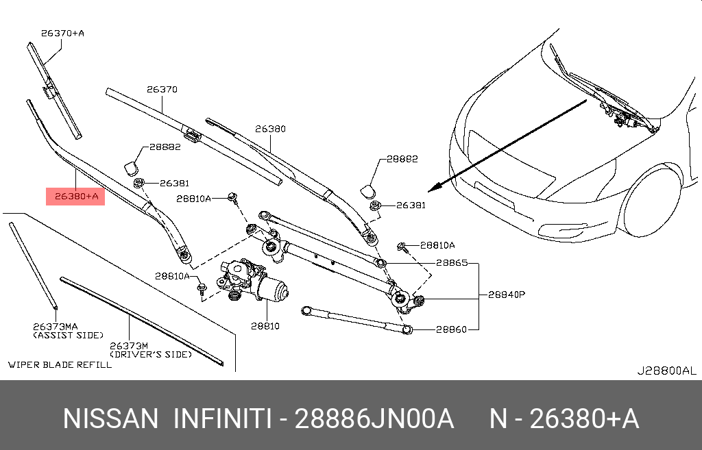 28886-JN00A NISSAN ПОВОДОК ARM ASSY-WINDSH 28886-JN00A