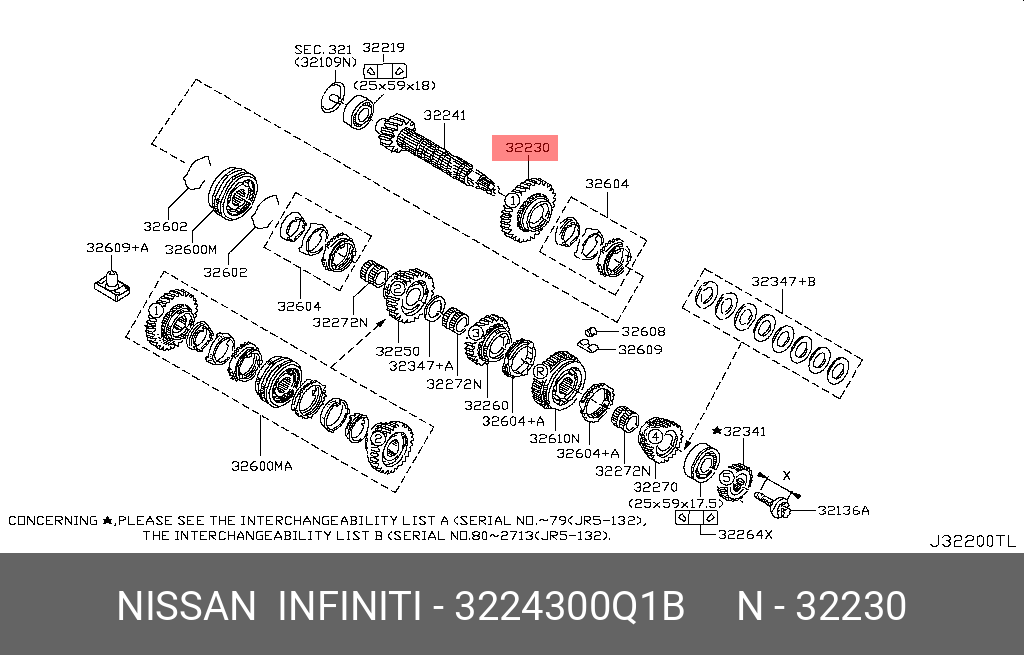 32243-00Q1B NISSAN ШЕСТЕРНЯ КПП