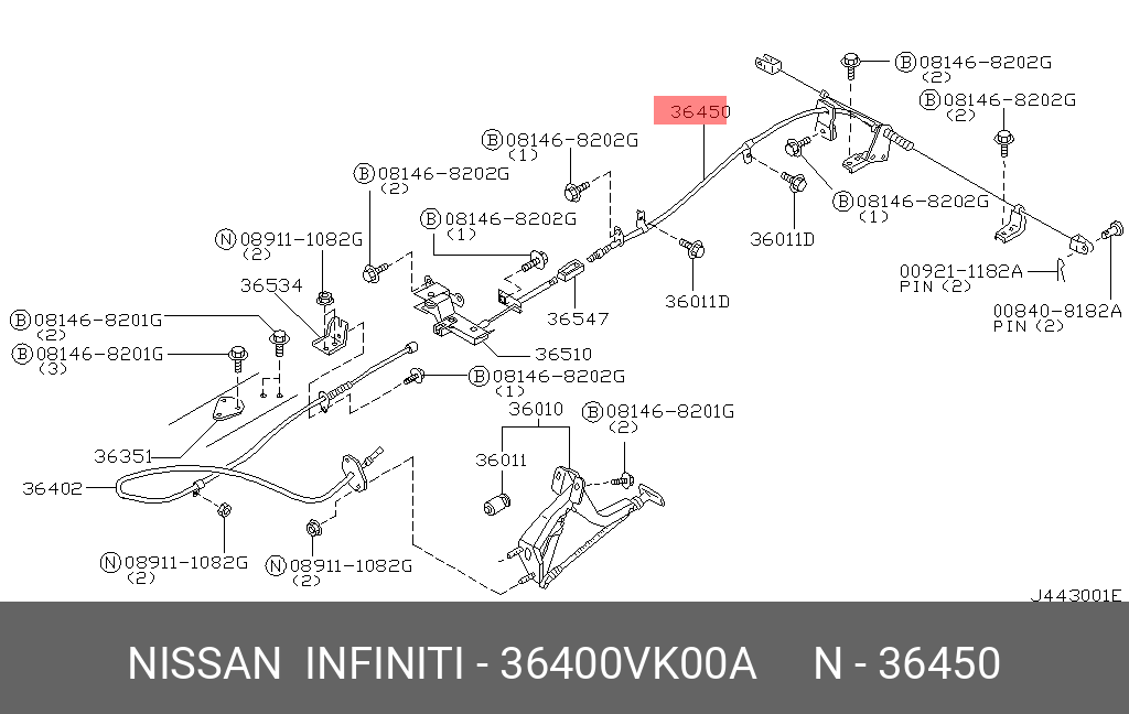 36400-VK00A NISSAN трос ручного тормоза!\ Alfa Romeo 145/146/155 92>