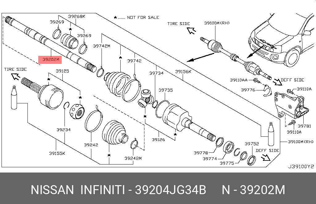 | Наименование | Вал привода, передний правый 39204-JG34B |