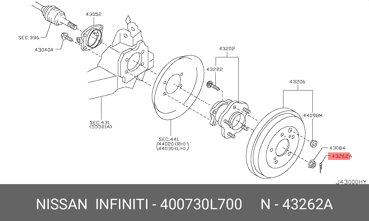 40073-0L700 NISSAN Штифт ступицы колеса 400730L700 Nissan