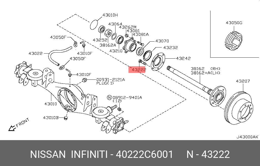 40222-C6001 NISSAN шпилька колёсная! M12x1.5 L=52\ Nissan, Subaru, Infiniti