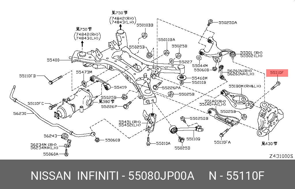 55080-JP00A NISSAN болт заднего поперечного рычага!\ Nissan