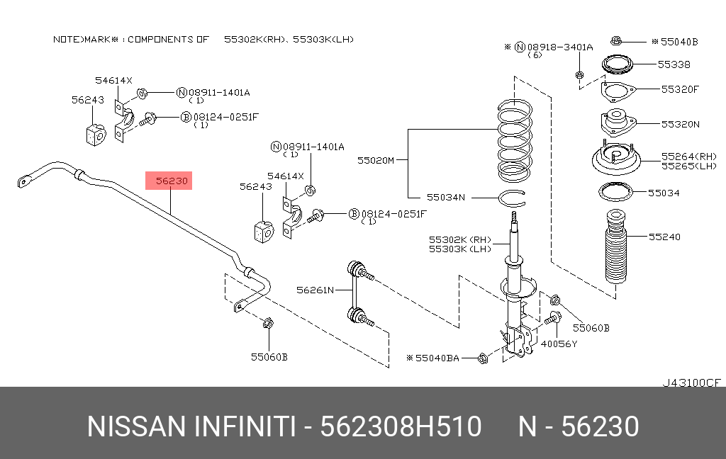 56230-8H510 NISSAN стабилизатор задний!\ Nissan X-Trail 01-07