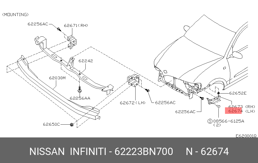 62223-BN700 NISSAN кронштейн бампера перед. лев.!\ Nissan Almera 00-06