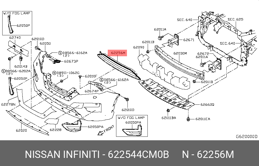62254-4CM0B NISSAN РЕШЕТКА БАМПЕРА НИЖНЯЯ