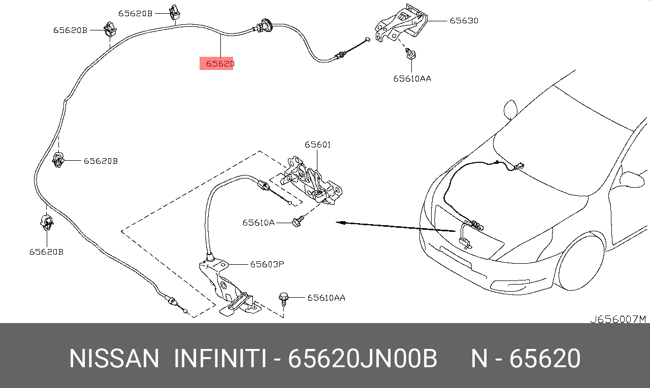 65620-JN00B NISSAN ТРОС ЗАМКА КАПОТА