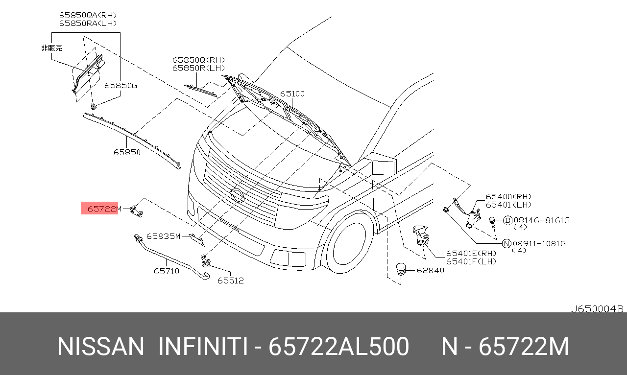 65722-AL500 NISSAN клипса держателя упора капота!\ Nissan