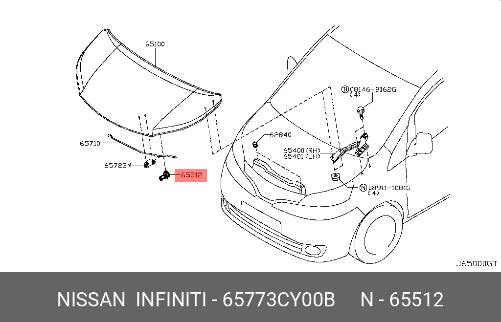 65773-CY00B NISSAN клипса упора капота!\ Nissan