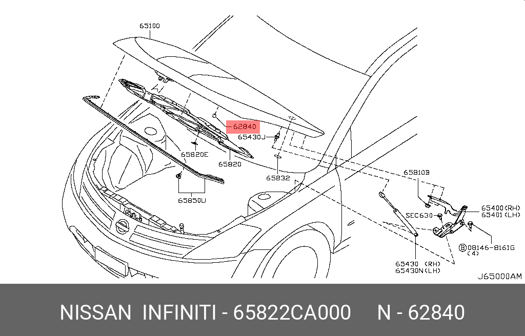 65822-CA000 NISSAN Отбойник капота 65822CA000