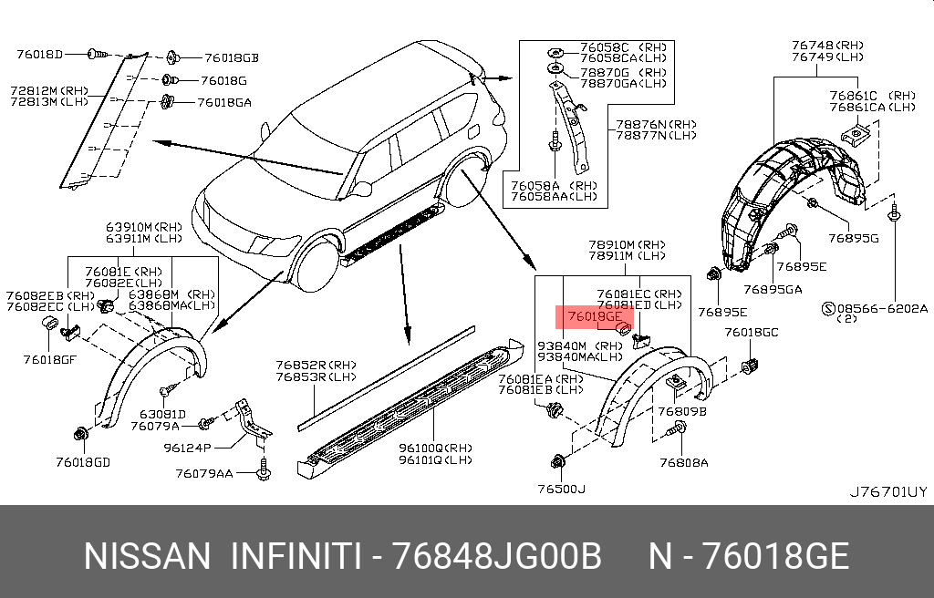 76848JG00B NISSAN клипса!\ Infiniti QX56, Nissan Juke/X-trail 07>
