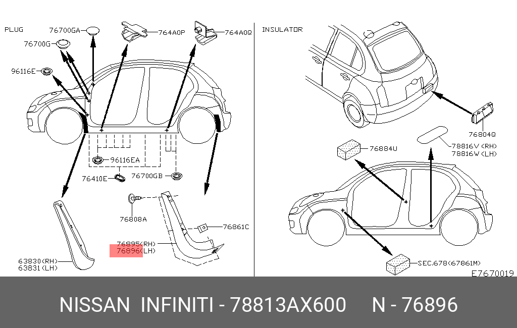78813-AX600 NISSAN Брызговик задний левый
