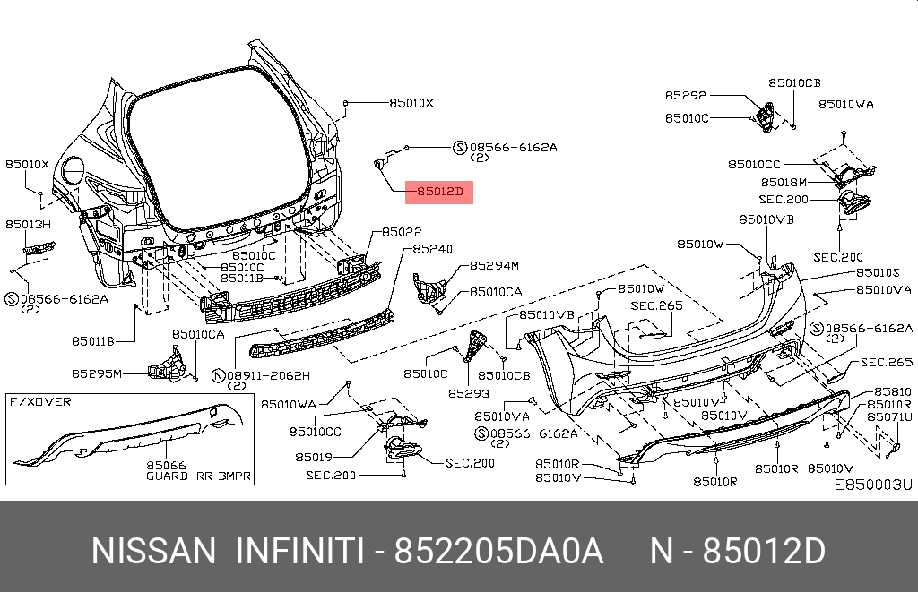 85220-5DA0A NISSAN 852205DA0A КРОНШТЕЙН ПЛАСТИКОВЫЙ
