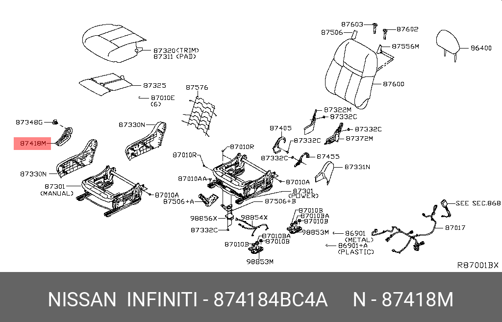 87418-4BC4A NISSAN 874184BC4A РУКОЯТКА РЕГУЛИРОВКИ СИДЕНИЯ