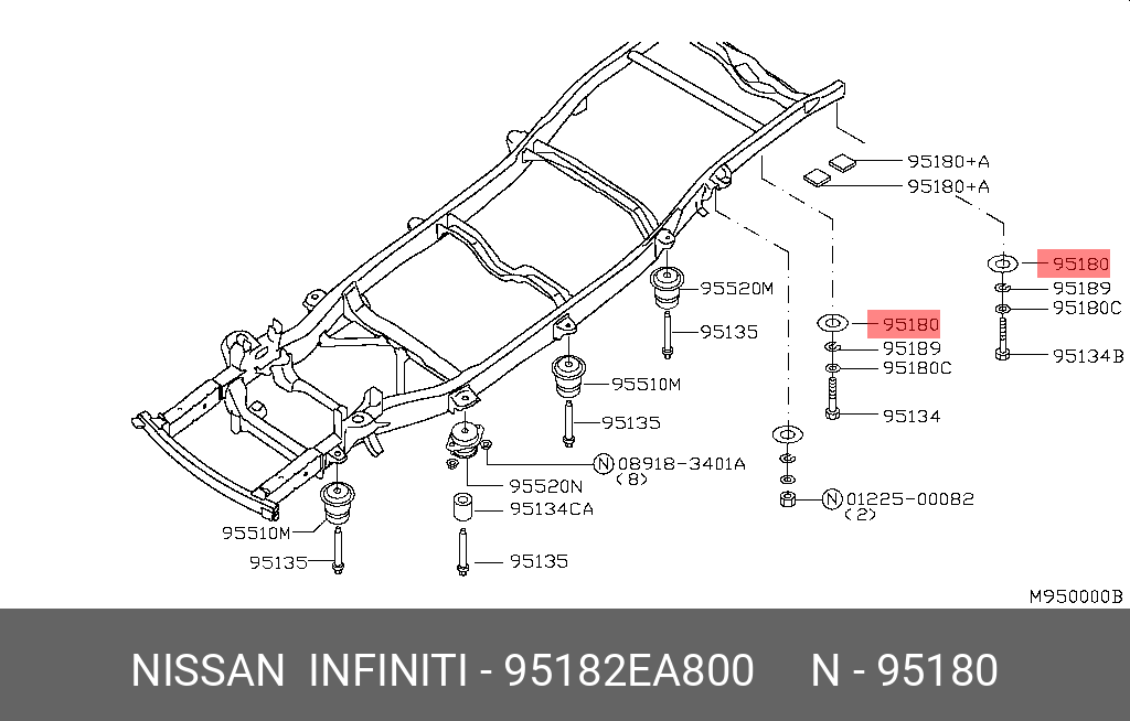 95182-EA800 NISSAN 95182EA800 Прокладка между кузовом и рамой D40M