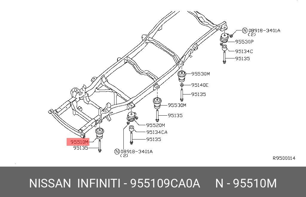 95510-9CA0A NISSAN сайлентблок подрамника!\ Nissan Pathfinder R51M 05-13
