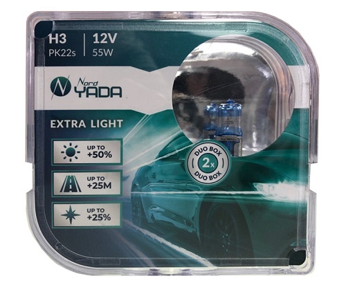 907363 NORD YADA Лампа галогенная H3 12V 55W "Nord YADA" Extra Light +50% (2 шт.) (Plastic case)