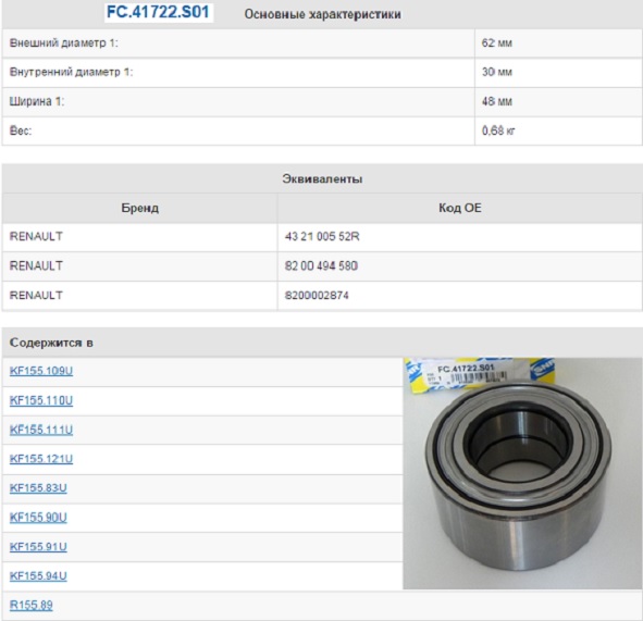 | Наименование | подшипник ступицы задней! 30x62x48 Renault Logan, Duster, Kangoo2 |