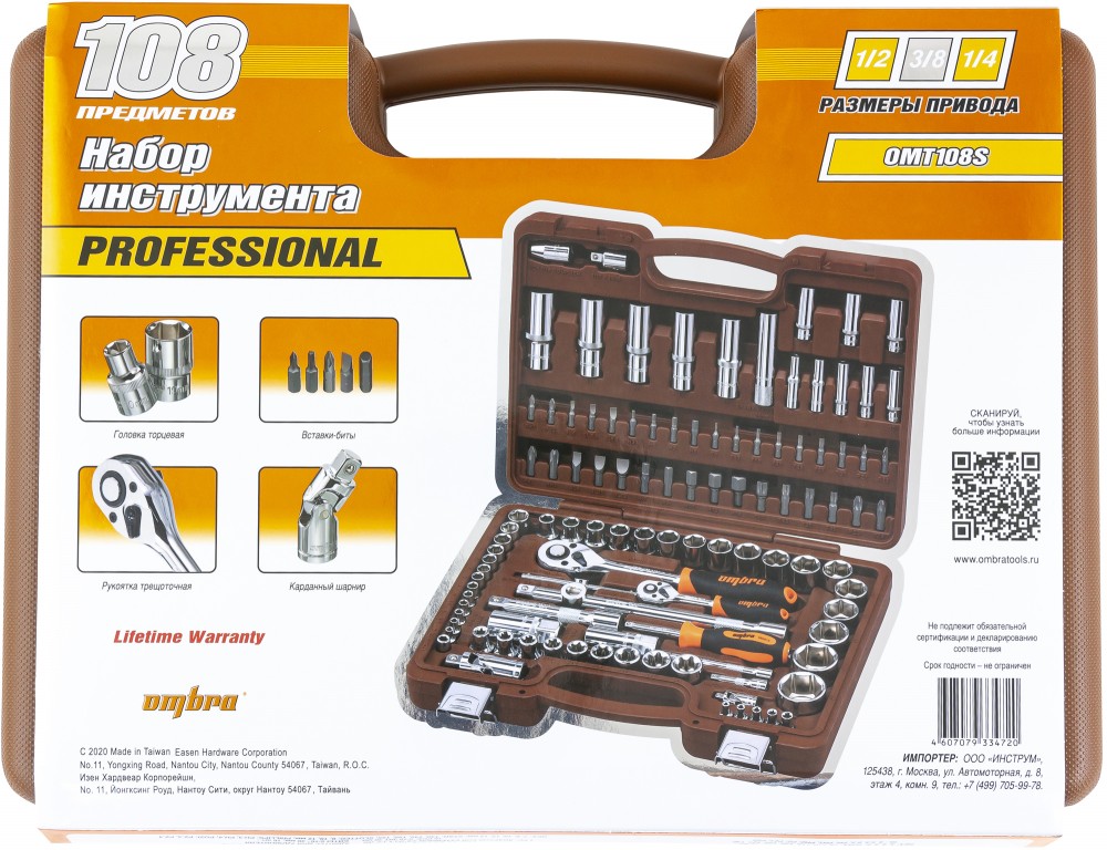 OMT108S OMBRA набор инструментов! 108пр. универсальный 1/4'', 3/8'', 1/2''\