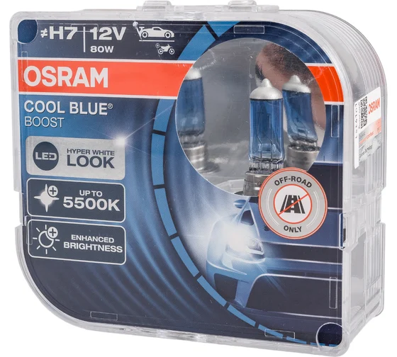 | Наименование | Лампа 12V H7 80W PX26d +50% 5500K бокс (2шт.) Cool Blue Boost OSRAM |