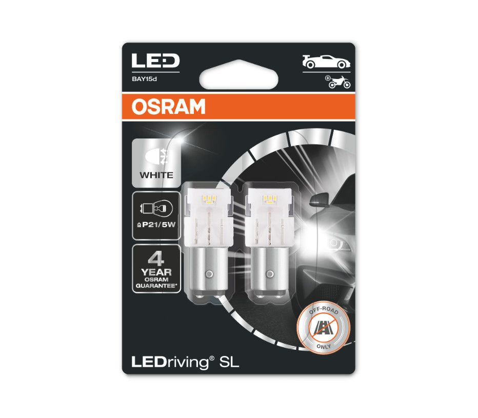 | Наименование | Лампа светодиодная 12V P21/5W BAY15d 6000K блистер (2шт.) LEDriving SL OSRAM |