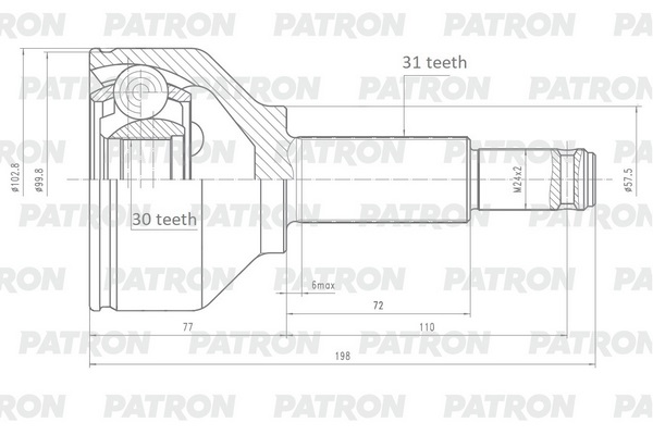 PCV2149 PATRON ШРУС наружный 31X57X30 FORD Transit 2014- (TTG) PCV2149