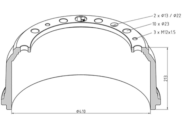 | Наименование | барабан торм.передний ! 410x160/167 H=213 d=298/335 n10x23 \Omn MB |