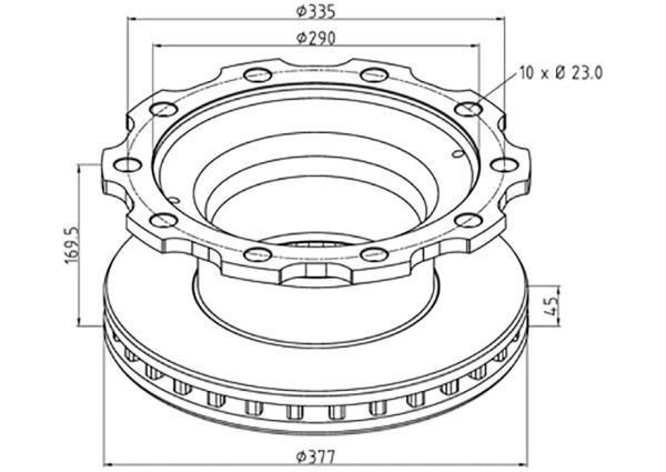 | Наименование | диск тормозной! 377/ x45/169.5 10n-335-M23\ BPW SKH Eco SB3745 |