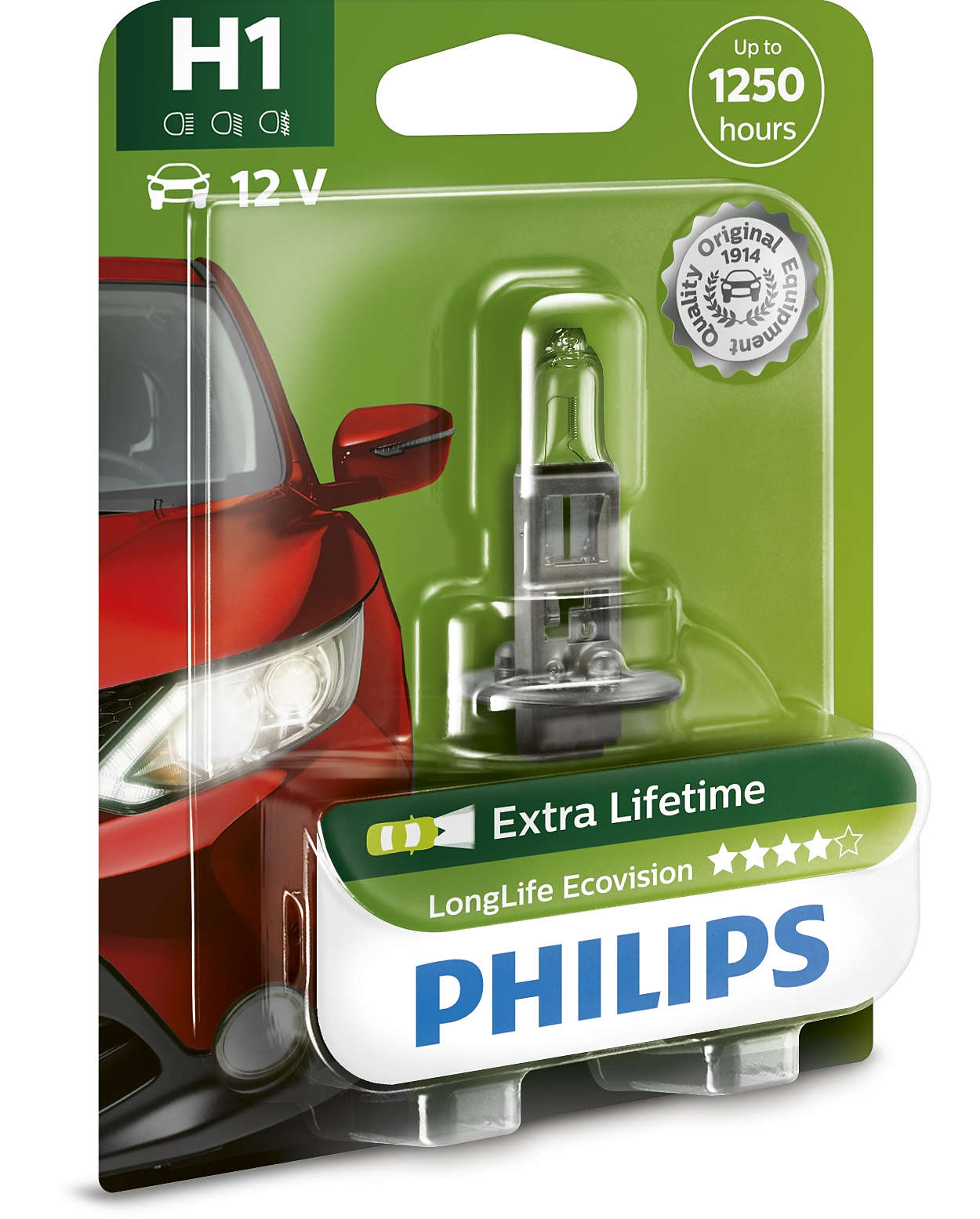 12258LLECOB1 PHILIPS Лампа 12V H1 55W P14.5s блистер (1шт.) Long Life Eco Vision PHILIPS