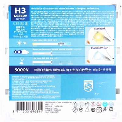 12336DVS2 PHILIPS Лампа 12V H3 55W PK22s 5000K бокс (2шт.) Diamond Vision PHILIPS