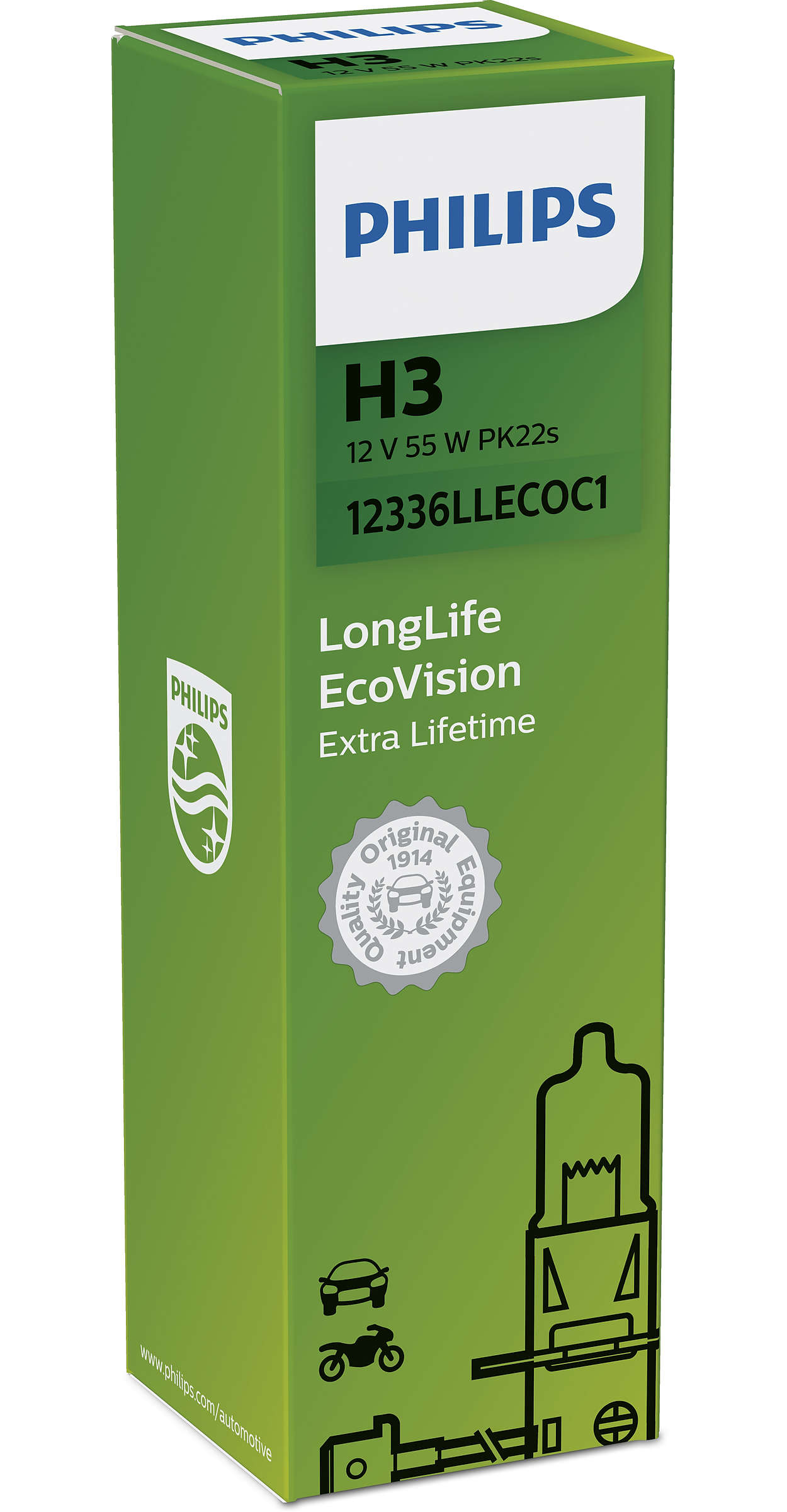 12336LLECOC1 PHILIPS Лампа 12V H3 55W PK22s Long Life Eco Vision PHILIPS