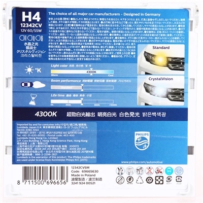 12342CVSM PHILIPS Лампа набор 12V H4 60/55W+W5W/T105 P43t бокс (2шт.+2шт.) Crystal Vision PHILIPS