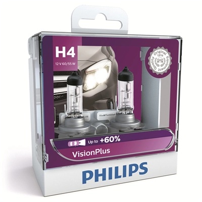 12342VPS2 PHILIPS Лампа 12V H4 60/55W P43t +60% бокс (2шт.) Visionplus PHILIPS