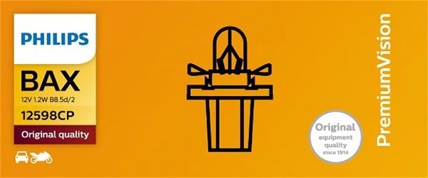 | Наименование | Лампа 12V 1.2W BAX8.5d черный патрон PHILIPS |