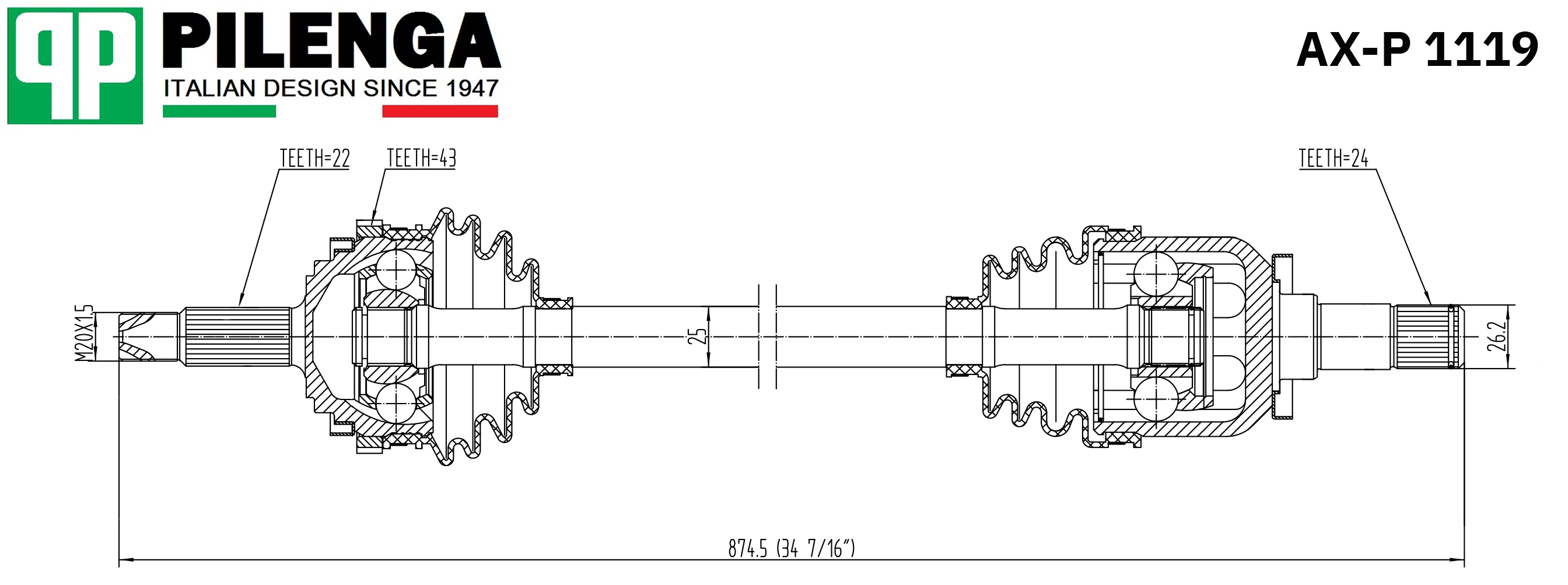 AXP1119 PILENGA Привод в сборе правый с ABS ВАЗ 1118, 2170, 2192, 2194 AX-P1119