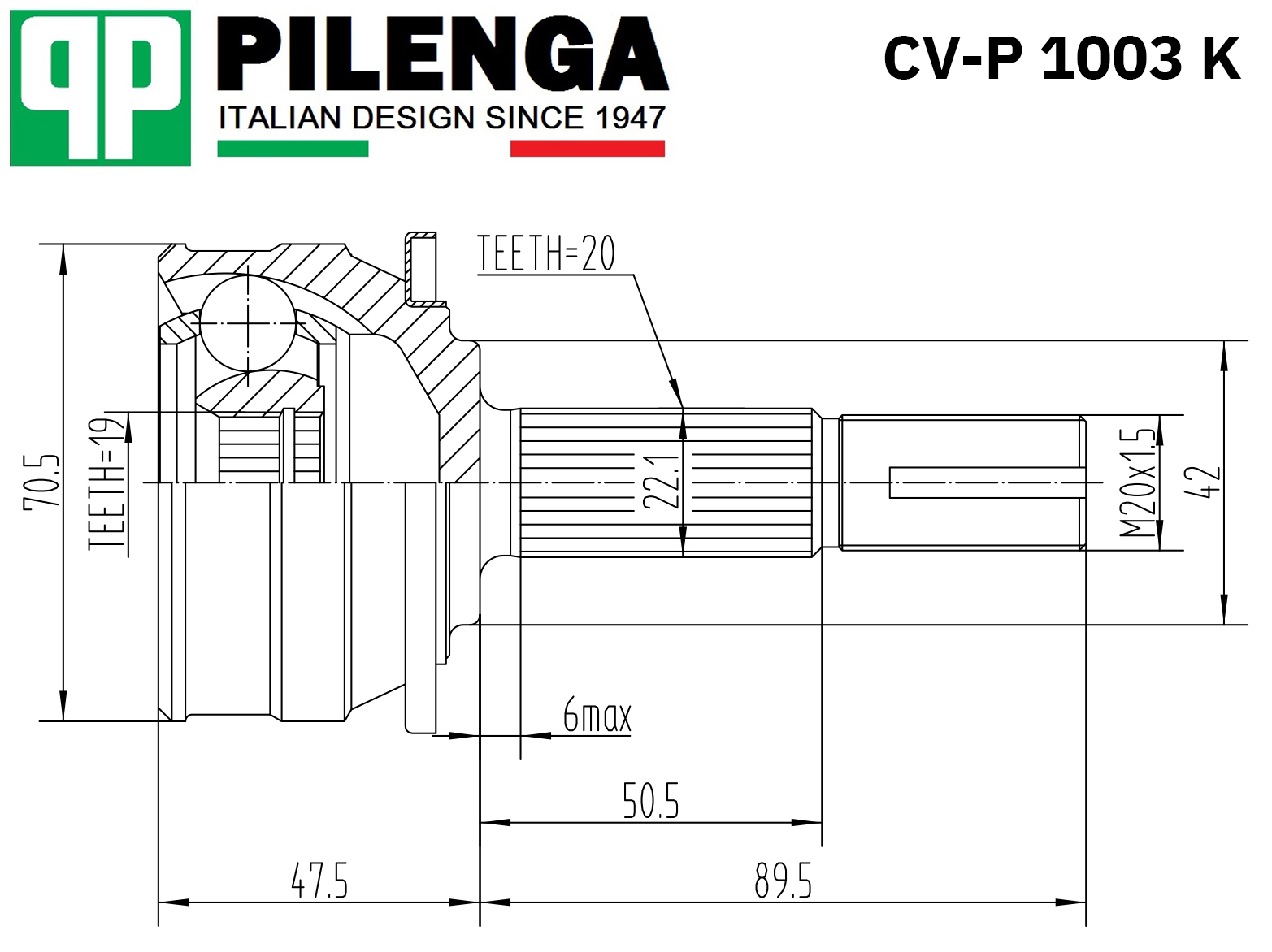 CVP1003K PILENGA ШРУС наружный с пыльником ВАЗ 1111 CV-P1003K