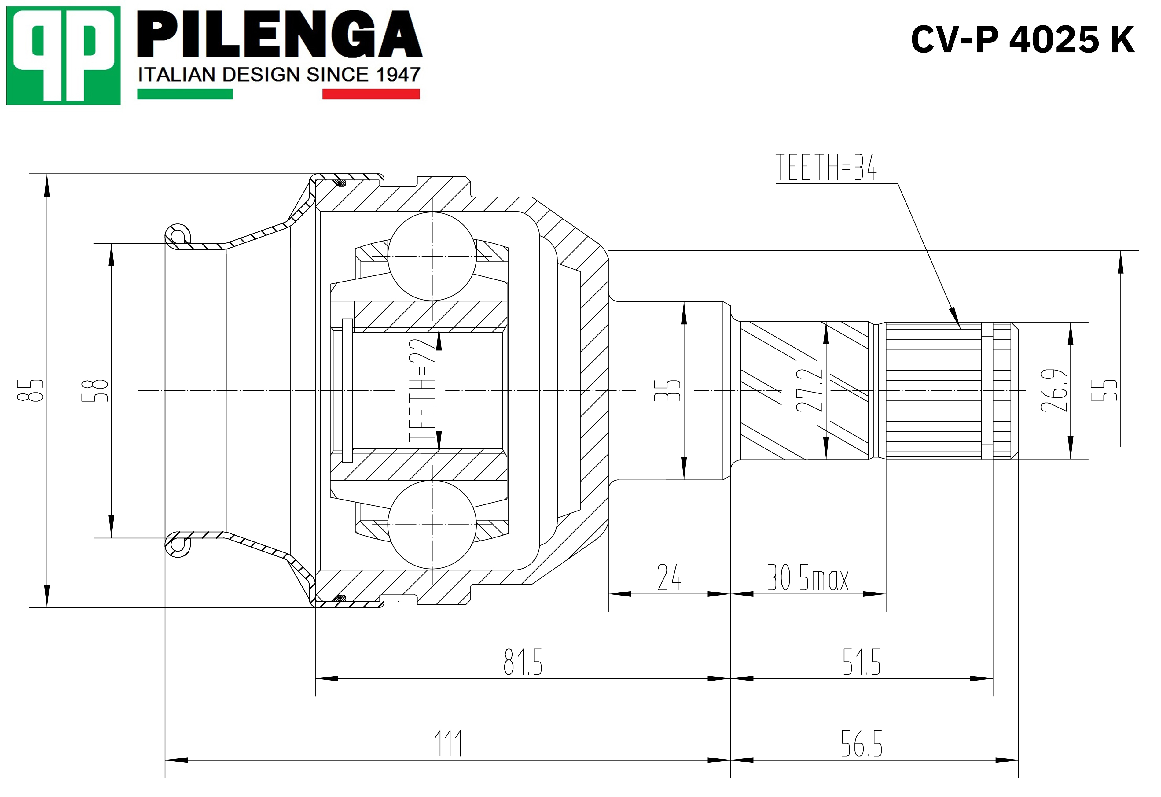 CVP4025K PILENGA Шрус внутренний NEXIA, LANOS CV-P4025K