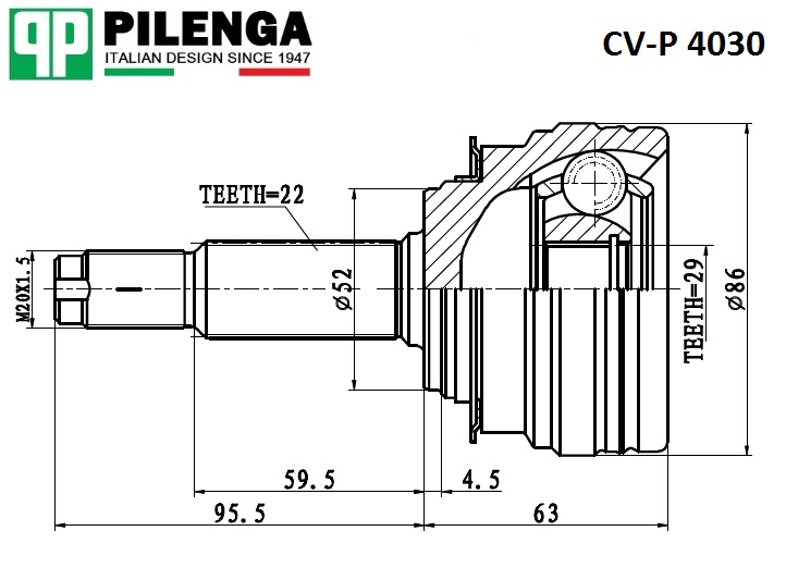 CVP4030K PILENGA Шрус наружный 8V NEXIA, LANOS CV-P4030K