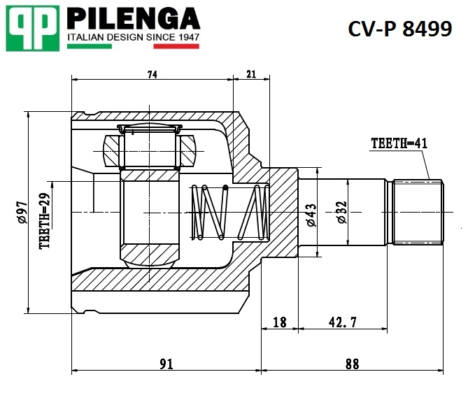 CVP8499K PILENGA ШРУС внутренний левый шлицы - 41х29 BOXER III, DUCATO III, JUMPER III CV-P8499K