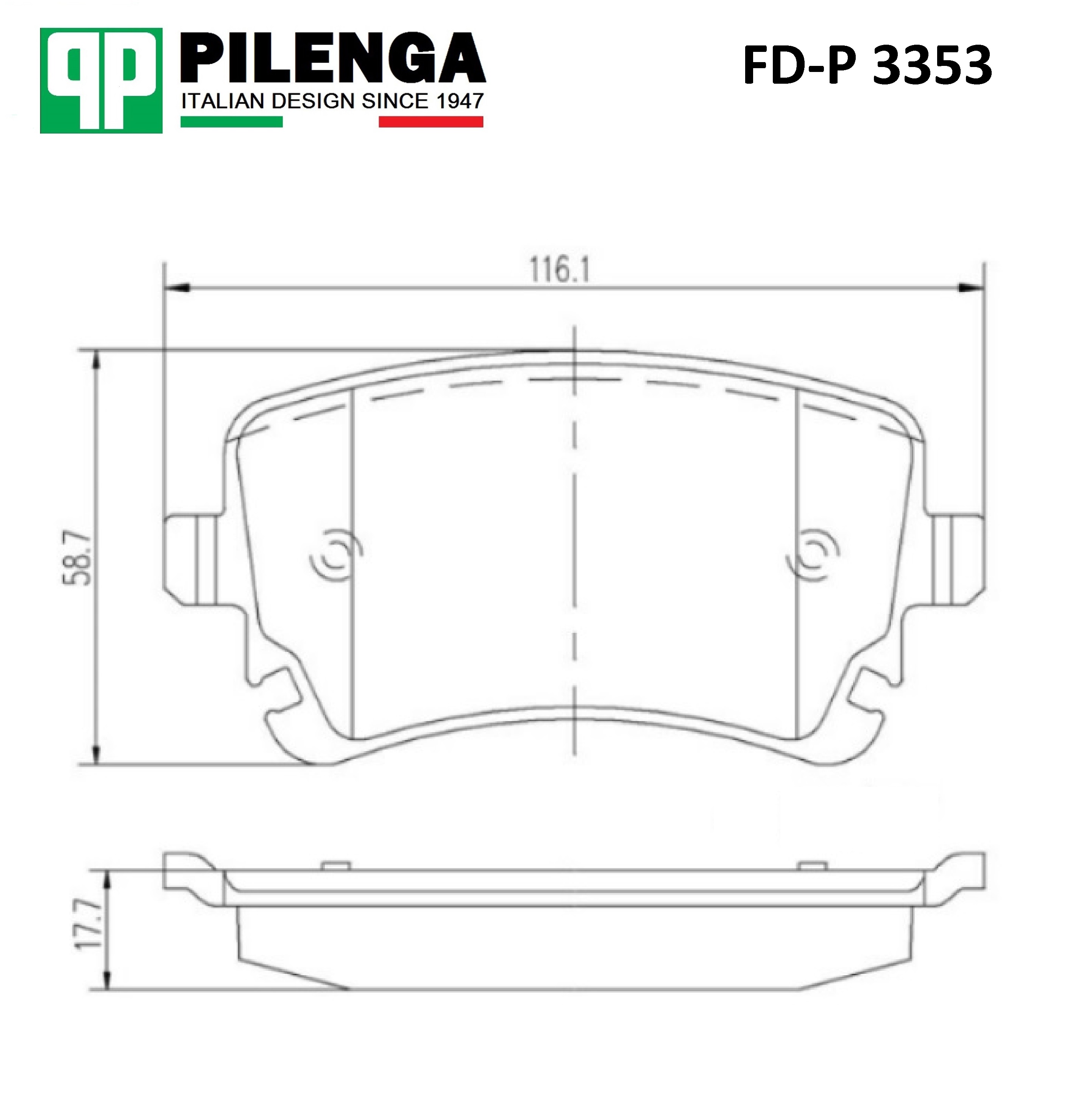 FDP3353 PILENGA Колодки тормозные задние 116,5х59х17,7 VW T5 FD-P3353