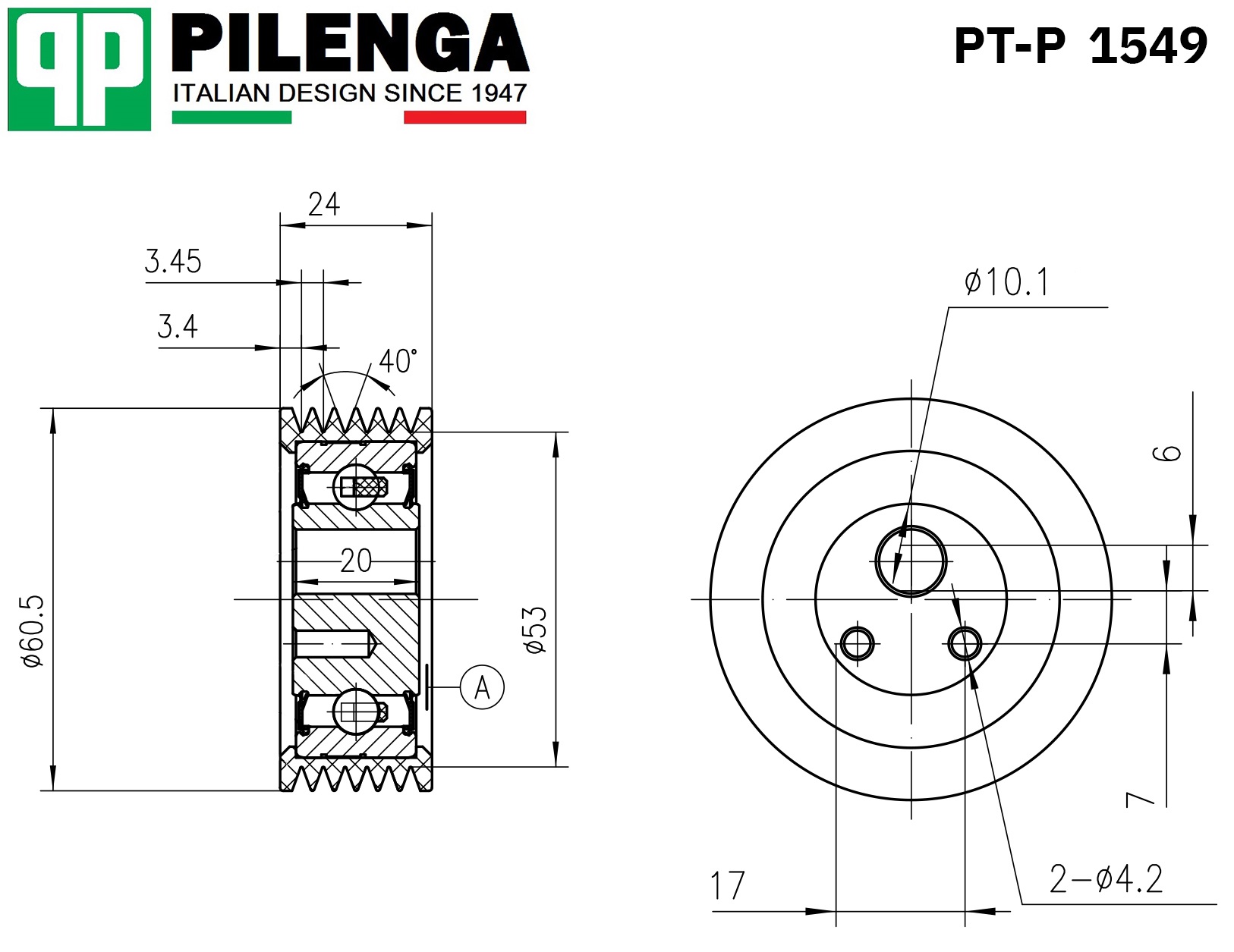 PTP1549 PILENGA Ролик натяжения ремня генератора и кондиционера ВАЗ 2110-2112, 1117-1119 PT-P154