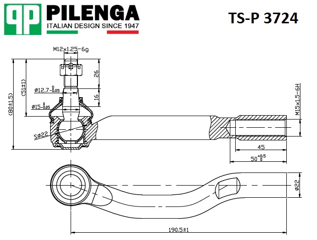 TSP3724 PILENGA Наконечник тяги рулевой, правый TOYOTA COROLLA 150 TS-P3724
