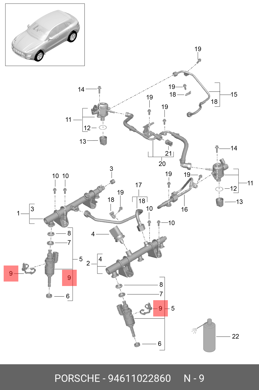 94611022860 PORSCHE 94611022860 ДЕРЖАТЕЛЬ ТОПЛИВНОЙ ФОРСУНКИ