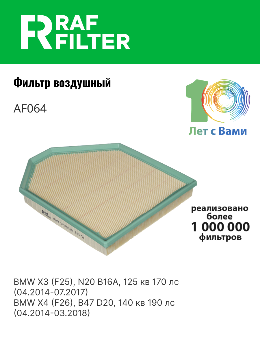 AF064 RAF FILTER Фильтр воздушный BMW X3 (F25),X4 (F26) (дв.N20B20A) RAF FILTER