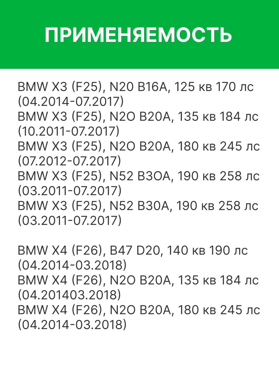 | Наименование | Фильтр воздушный BMW X3 (F25),X4 (F26) (дв.N20B20A) RAF FILTER |
