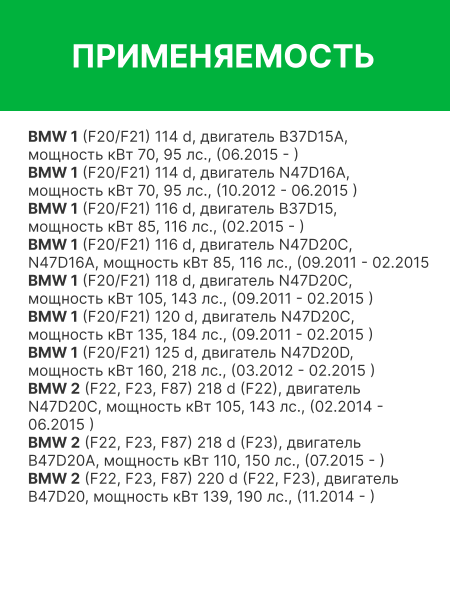 | Наименование | Фильтр воздушный BMW 1 (F20,F21),3 (F30,F31) (N47) RAF FILTER |