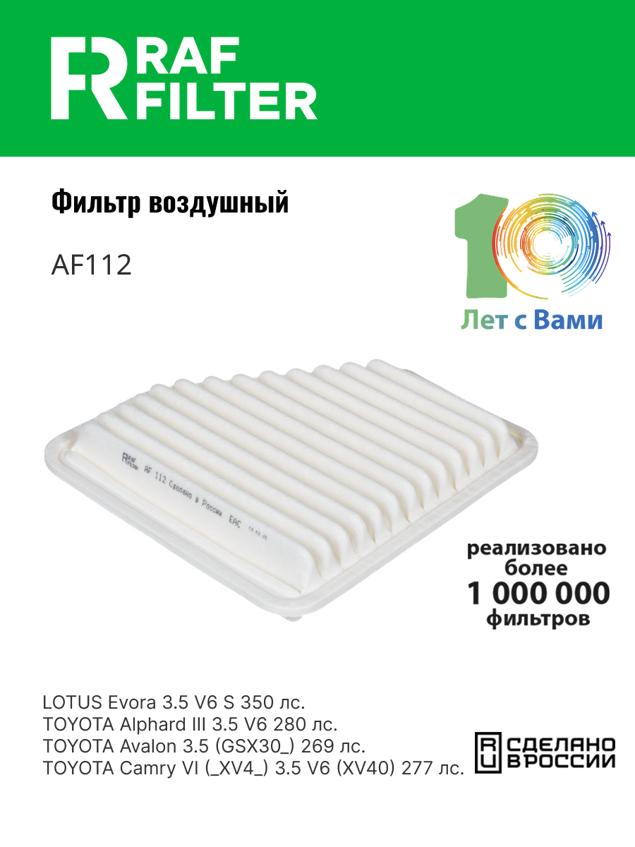 AF112 RAF FILTER Фильтр воздушный TOYOTA Camry (06-),Rav 4 (06-) RAF FILTER