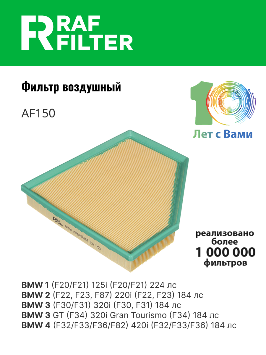 AF150 RAF FILTER Фильтр воздушный BMW 3 (F30) (14-) RAF FILTER