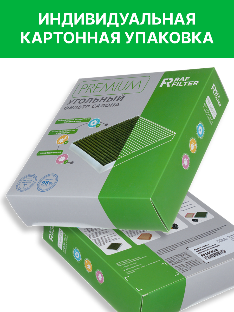 RF001SUB RAF FILTER Фильтр воздушный салона SUBARU Forester,Impreza угольный антиаллерг. RAF FILTER